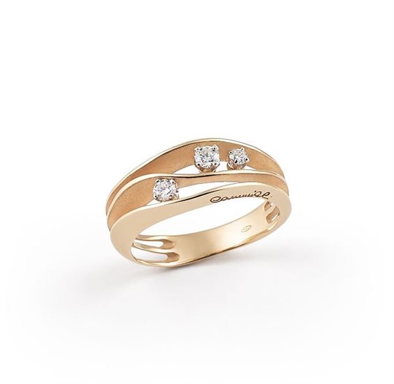 Anello Annamaria Cammilli Oro rosa 18 kt 3 Diamanti taglio brillante tot. Ct 0.20 Peso grammi 3.60 Misura disponibili 11-12-13-14-15 Le altre misure si possono eventualmente ordinare