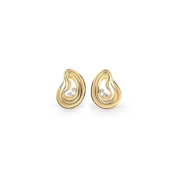 Orecchini Collezione Essential Dune Atolli con tre fascie concentriche ondulate in oro giallo sunrice 750‰ lucido e satinato con due diamanti naturali taglio brillante. Riferimento: GOR3085U