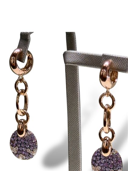 ORECCHINI in oro rosa 750 GR 22 con zaffiri viola ct 2.36 e diamanti ct 0.60