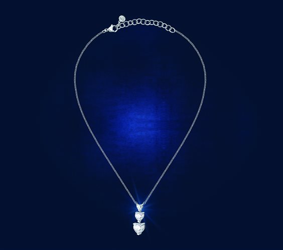 Collana Diamond Heart Silver Catena e Pendente Zirconi Bianchi 38+4cm