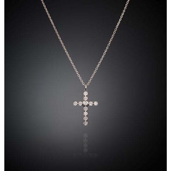 Collana pendente placcata argento con croce di zirconi, il centrale caratterizzato dall'iconico taglio a cuore. Croce: 22x30x3,5 mm (LxAxP) Catena: 42+8 cm