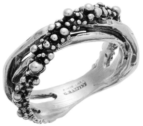 Anello Petit Perlage Piccolo. Dall'ispirazione delle bollicine di champagne, un flusso di sferette luminose che si rincorrono, creando giochi e forme, come nella più romantica delle notti d’estate. Realizzato interamente a mano in azienda.
