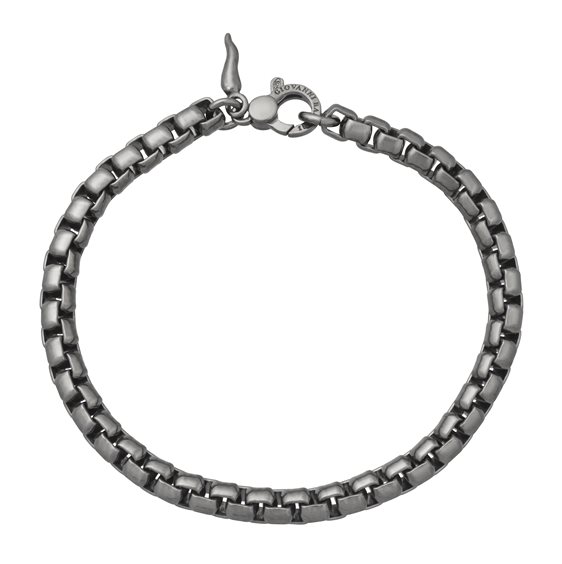 Bracciale Veneziana Black. Una catena evergreen come la veneziana viene qui rivisitata e trasformata in un bracciale d'argento dal design assolutamente contemporaneo, impreziosito da una finitura in rodio nero. Tale lavorazione conferisce all'argento 925 una lucentezza profonda e intensa, con uno straordinario effetto nero metallico.