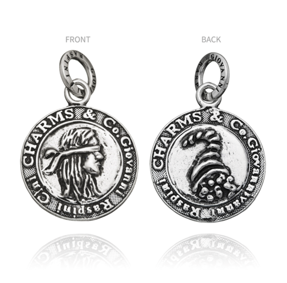 La dea Fortuna, dea bendata: un piccolo tocco di fortuna nella vita ci vuole sempre. Diametro cm.3,50 (esclusa maglina con logo cm.0,90).