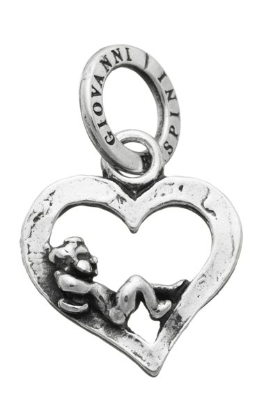 Amorino su cuore. Siamo sempre insieme, e il cuore batte. Altezza cm.2,10 (esclusa maglina di cm.0,90).