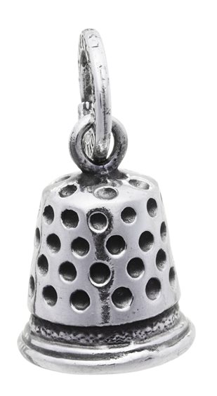 Charm a forma di ditale, munito di maglina con logo.