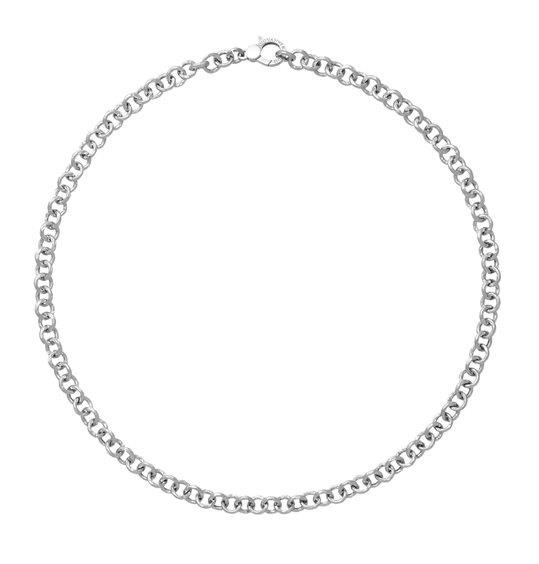 Tanti anelli in argento battuto, uniti l'uno con l'altro. Una collana delicata ed elegante. Realizzata completamente a mano in azienda.