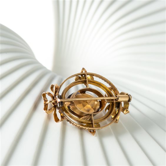 SPILLA EPOCA 1940 IN ORO GIALLO 18 KT CON TOPAZIO. PESO GR 14.7 USATO, OTTIME CONDIZIONI