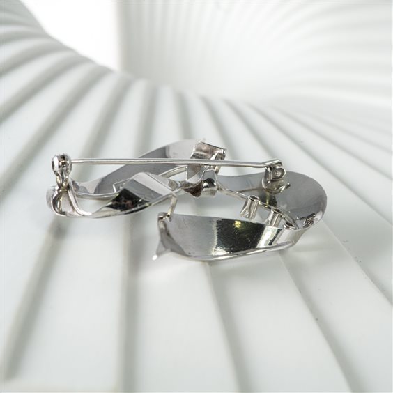 SPILLA EPOCA 1970 IN ORO BIANCO 18 KT CON ZIRCONI PESO GR 5.7 USATO, OTTIME CONDIZIONI