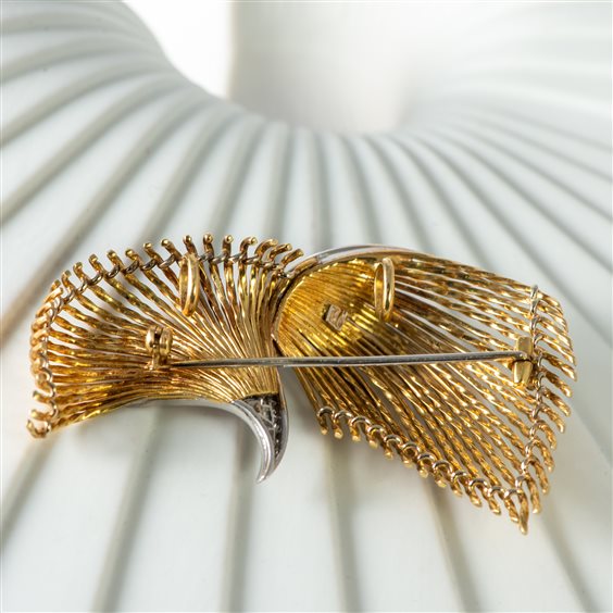 SPILLA CIONDOLO EPOCA 1950 IN ORO GIALLO E BIANCO 18 KT CON DIAMANTI CT 0.25 PESO GR 19 USATO, CONDIZIONI ECCELLENTI CM6X3