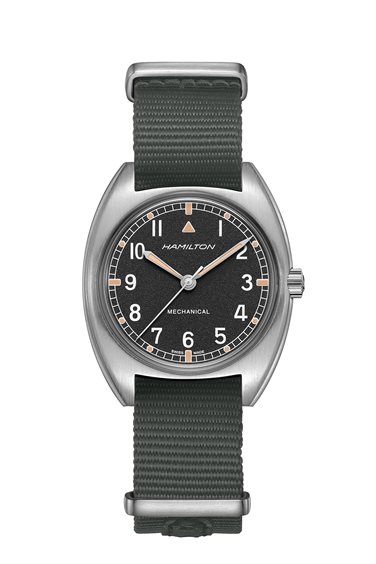 Hamilton Khaki Pilot Pioneer Mechanical H76419931 L' Hamilton Khaki Aviation Pilot Pioneer Mechanical H76419931 è una reinterpretazione dello storico orologio militare realizzato per la Royal Air Force britannica nel 1973. Con il suo design distintivo del quadrante e il robusto cinturino NATO, questo orologio è un orologio militare con vero carattere. All'interno della cassa, il movimento meccanico svizzero Hamilton H-50 (basato sull'ETA 2801-2) a carica manuale ticchetta in modo affidabile. Funziona ad una frequenza di 21.600 semi-frequenze all'ora, dispone di 17 rubini e, soprattutto, di una riserva di carica estesa di 80 ore . L'orologio rimane al polso grazie ad un cinturino in tessuto nato di ottima fattura in grigio con fibbia argentata. Il modello si distingue per l'eccellente leggibilità e la facile chiarezza, necessarie per gli orologi dell'aviazione. Il quadrante grigio è protetto da un vetro minerale . Le lancette e gli indici sono rivestiti con un composto luminescente, che garantisce una luminosità più lunga e una migliore leggibilità anche in condizioni di scarsa illuminazione. Le dimensioni della cassa di 36 x 33 mm rendono l'orologio indossabile sulla maggior parte dei polsi di uomini e donne. L'impermeabilità dell'orologio è di 100 m (10 ATM) , quindi può sopportare un contatto anche maggiore con l'acqua, come il nuoto.