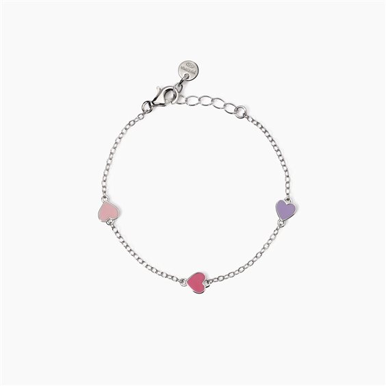 Bracciale in argento 925/ººº rodiato con catena rolò 1.5 mm ed elementi cuoricino smaltati 5x5 mm, lunghezza regolabile da 12 a 14 cm