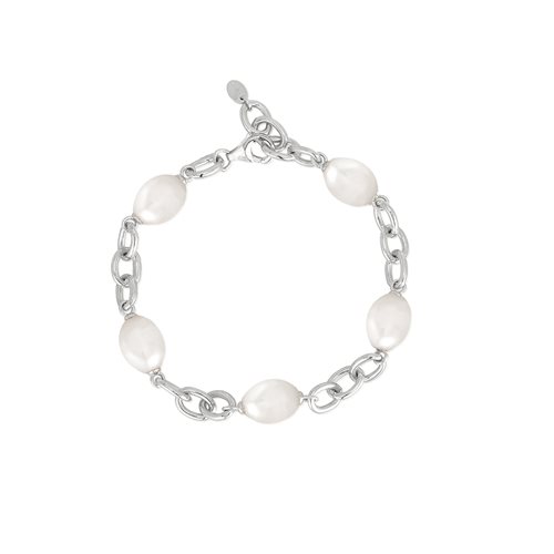 Bracciale donna , argento 925% , rodiato , catena maglia rolò , lunghezza massima cm 50 regolabile , perle bianche barocche , scatola e garanzia originali.