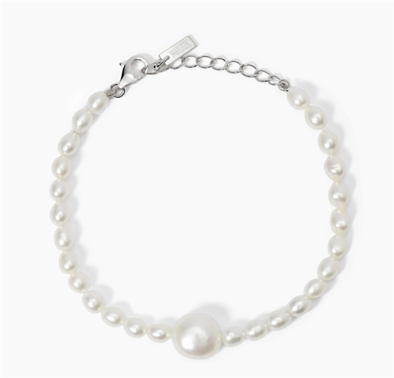 Bracciale argento 925/°°° rodiato con perle riso Ø 4.5-5 mm e centrale barocca Ø 11-12 mm, lunghezza regolabile da 16 a 19 cm
