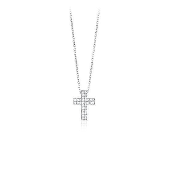 collana in argento 925°° con pendente in argento a forma di croce e zirconia cubica.