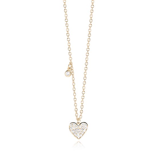 Girocollo in argento 925/°°° dorato con ciondolo cuore 8x9 mm e zirconi bianchi Ø 2, 1.2 e 1 mm, lunghezza regolabile da 40 a 45 cm
