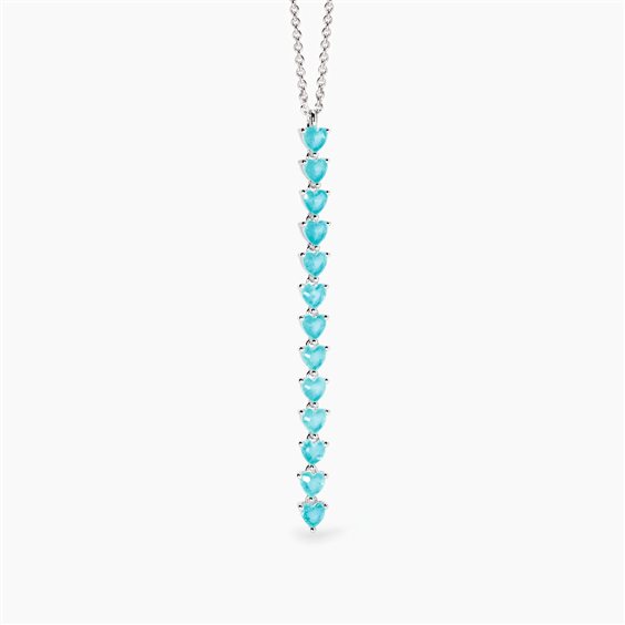 Girocollo in argento 925/ººº rodiato con catena rolò 1.5 mm e pendente 5x67.5 mm con elementi in fusion stone taglio cuore 4x4 mm con glass azzurro e cristallo di rocca, lunghezza regolabile da 40 a 45 cm