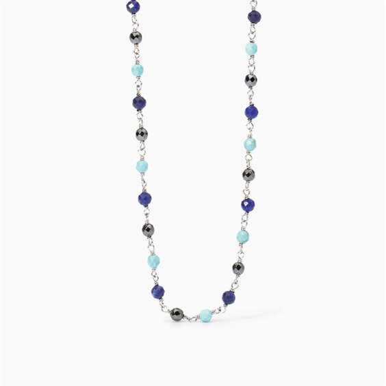 Collana in argento 925/°°° rodiato con ematite, lapis e turchese faccettati 4x4 mm, lunghezza regolabile da 45 a 50 cm
