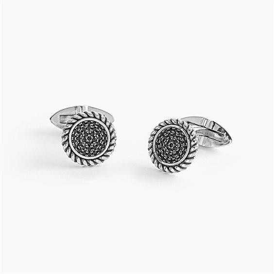 Gemelli in argento 925/°°° finitura rodiata 16 mm con pavè di zirconi neri Ø 1.25 mm
