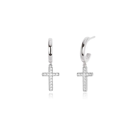 Orecchini argento 925/°°° cerchio con croce e zirconi bianchi 1.10 mm, Ø esterno 10 mm, lunghezza 2.5 cm