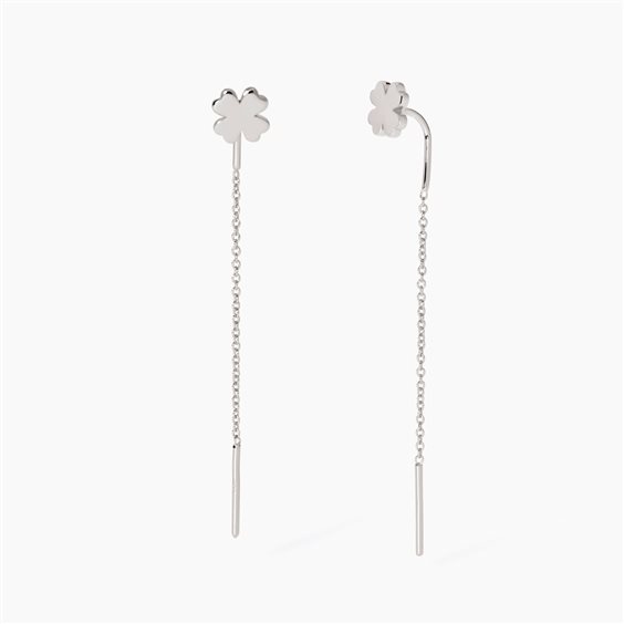 Orecchini in argento 925/ººº rodiato con catena rolò 1.1 mm e quadrifoglio 6.5x6.5 mm, lunghezza totale orecchino 5.6 cm