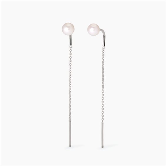 Orecchini in argento 925/ººº rodiato con catena rolò 1.1 mm e perle coltivate Ø 5-5.5 mm, lunghezza totale orecchino 5.6 cm