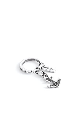 Portachiavi argento 925/°°° finitura rodiata, ciondolo ancora 17x21 mm con borchie