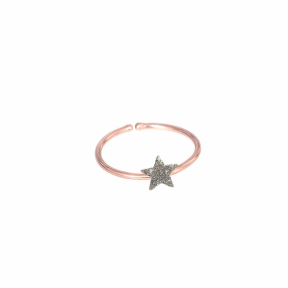 ANELLO AURUM IN ORO 18 CARATI CON STELLA IN LASTRA E POLVERE DI DIAMANTI CROMO MIS. 10 Anello Aurum in oro rosa 18 carati con stella 6 mm x 6 mm in lastra e con polvere di diamanti cromo. L'anello è in misura 10 e può essere adattata in gioielleria fino alla misura 12.
