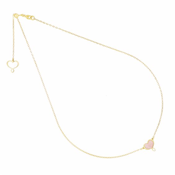 Girocollo con cuore Maman et Sophie centrale con madreperla rosa realizzato in argento 925 con galvanica oro giallo ad alto spessore e resistenza. Il cuore Maman misura 10 mm x 10 mm. Il girocollo può essere regolato fino ad un massimo di 42 cm grazie alla piccola sfera scorrevole. È presente il cuore Maman all'estremità del girocollo. Chiusura a moschettone.