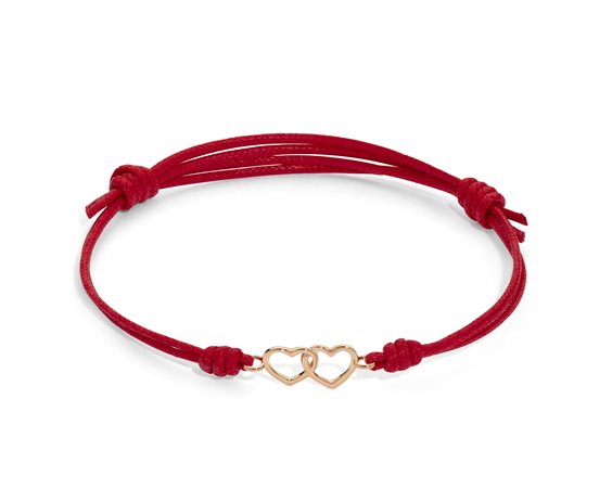 Bracciale cordino con 2 cuori intrecciati piccoli oro 750‰ g 0,35 - oro Giallo