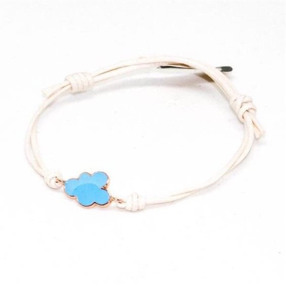 BRACCIALE CON NUVOLETTA IN ORO ROSA 18 KT E SMALTO AZZURRO CON CORDINO BIANCO.