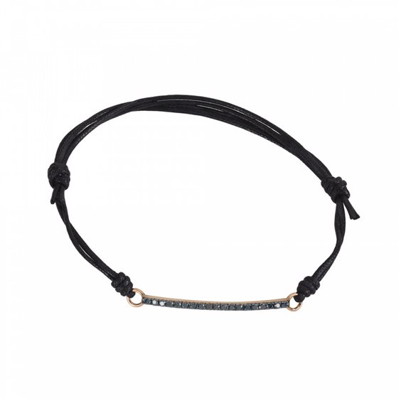 BRACCIALE CON BARRETTA IN ORO ROSA 18 KT E DIAMANTI GRIGI CON CORDINO GRIGIO.