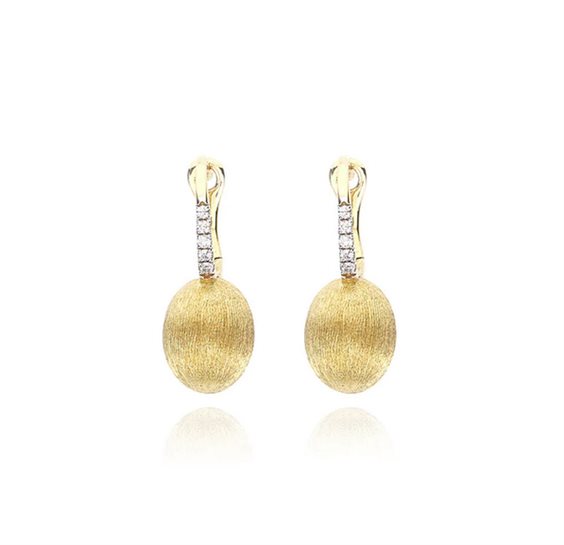Raffinati orecchini in oro 18kt coronati da eleganti dettagli in diamanti. La sofisticata lavorazione in oro gioca con la luce, riflettendola suggestivamente, e suggellando l'incontro tra la Natura e l'artigianalità. Misura orecchino: 6 x 16,5 mm Ref. OS41-583 DIAMANTI: - Peso (totale): 0.04 CT - Purezza: VS - Colore: G - Taglio: brillante rotondo