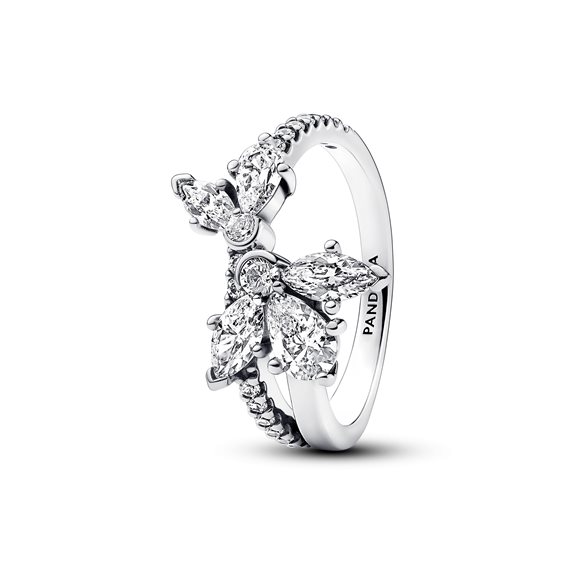 Asimmetrico Herbarium Petali Luminosi Argento Sterling 925; 2 zirconia cubica incolore per metà con incastonatura a griffe e per metà con montatura a castone e 16 zirconia cubica incolore con lavorazione a pavè e taglio brillante rotondo; 3 zirconia cubica incolore metà con incastonatura a gr