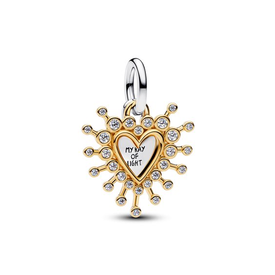 Charm placcato oro 14k, pendente doppio cuore "my ray of light"