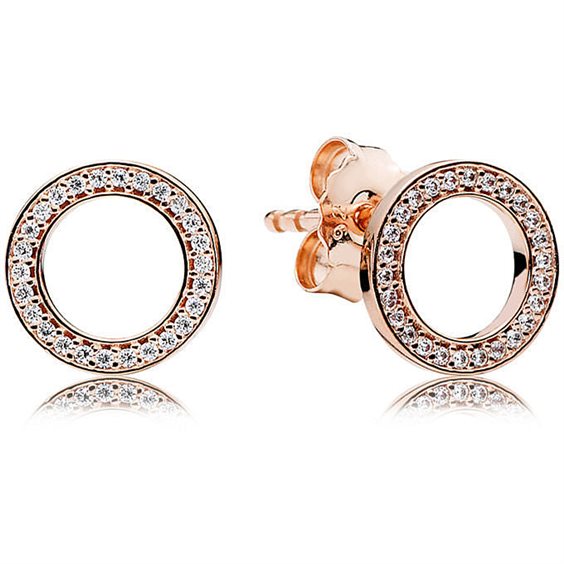 Orecchini a lobo Pandora in lega metallica placcata oro rosa 14kt e zirconia cubica