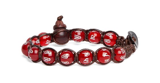 Bracciale Tamashii Mani Stones. Cordoncino marrone in cotone cerato, agata rossa incisa. Taglia unica ma predisposto per adattarsi ad ogni polso. I simboli incisi a simboleggiare il mantra della compassione universale "OM MANI PADME HUM" in sanscrito. Questa tonalità di rosso rilascia una profonda energia positiva che infonde protezione e sicurezza. L'Agata Rosso Passione si collega all'elemento del fuoco ed è usata anche per stimolare la vitalità che risiede dentro ogni individuo. Questo Tamashii® ispira, chi lo indossa, a ricercare la conoscenza interiore conferendo coraggio e passione. MADE IN TIBET