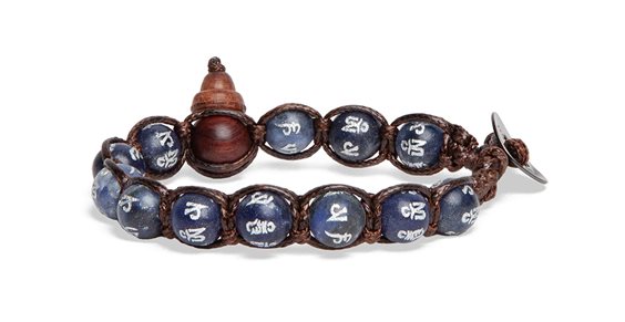 Bracciale Tamashii Mani Stones. Cordoncino marrone in cotone cerato, sodalite incisa. Taglia unica ma predisposto per adattarsi ad ogni polso. I simboli incisi a simboleggiare il mantra della compassione universale "OM MANI PADME HUM" in sanscrito. Conosciuta come la pietra della logica, della razionalità e dell'efficienza, la Sodalite è una pietra della profonda verità e porta questa in tutti gli aspetti della vita. Promuove infatti l'idealismo e stimola il desiderio di verità, consente di vivere la propria vita secondo i propri desideri rimanendo fedeli a se stessi. Il Tamashii® Sodalite rafforza il senso della propria identità e la capacità di difendersi da tutto ciò che lo mette in pericolo. MADE IN TIBET