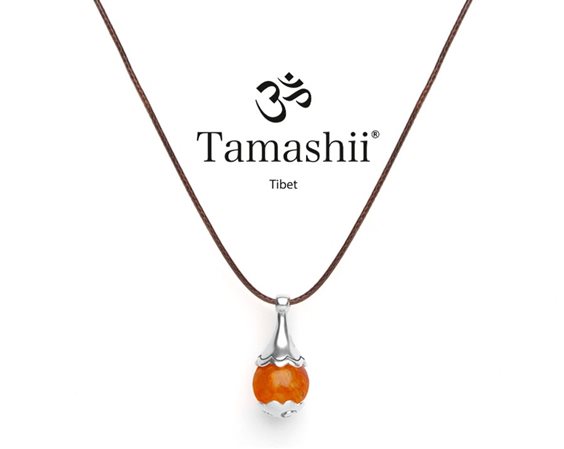 Girocollo in cordoncino con pendente in argento 925 rodiato e corniola. Asole finali con bottone che permettono di regolare la misura.