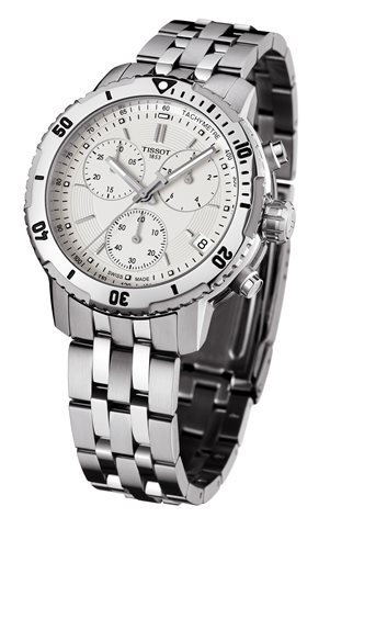 Orologio da uomo giovane e sportivo con cassa e bracciale in acciaio inox, vetro zaffiro antigraffio, movimento al quarzo a batteria con funzione di cronografo, quadrante argento e data a ore 4. Impermeabile 200 metri.