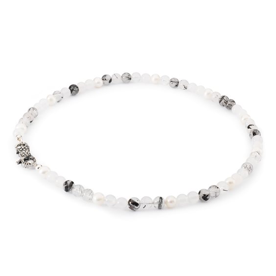 Collana Dream of Balance. Quarzo rutilato nero, onice bianco e perle per aiutarti a essere più forte e mantenere la tua mente in equilibrio. La lunghezza delle Collane è comprensiva dei 2 cm della Chiusura. La Chiusura e i Beads non sono inclusi nel prezzo e devono essere acquistati separatamente. L'immagine ha il solo scopo di illustrare il prodotto.
